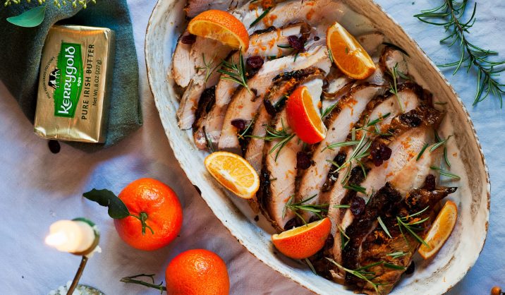 - Once the reduction for the sauce has reduced by half, add in 50mls of water, leave to simmer for 30 seconds then turn the heat to low. Start to swirl/whisk in 60g of cubed, cold Kerrygold butter. Finish the sauce with the chopped capers and whatever soft herbs you have -(e.g parsley and chives, but iyou don't have fresh herbs you can use dried parsley/dill/chives etc )
