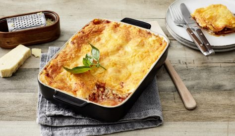 Dæk bunden af en 30x20 cm. bradepande med to skefuld tomatsauce. Lig derefter et lag af aubergine og kom 4 skefuld tomatsauce ovenpå. Drys godt med mozzarella og cheddar ovenpå. Gentag dette indtil du har brugt alle auberginer. Slut af med et lag tomatsauce og cheddar (ikke mozzarella). Sæt derefter bradepande i ovnen i 40 minutter eller indtil det er gyldenbrunt og gennembagt. Tag bradepanden ud og lad stå i cirka 5 minutter. Server derefter din ret sammen med en skål salat og friskt brød.