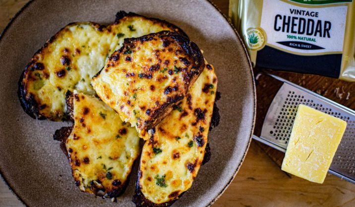 - Fordel cheddar ud på dine cheddar stykker og læg fire asparges ovenpå.