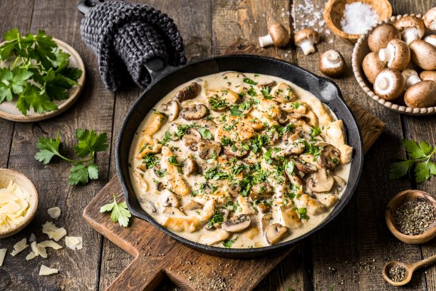 - Afpuds mørbraden og skær den i mindre stykker. Put dem i panden og steg. Når mørbraden er stegt, kan der tilsættes fløde.