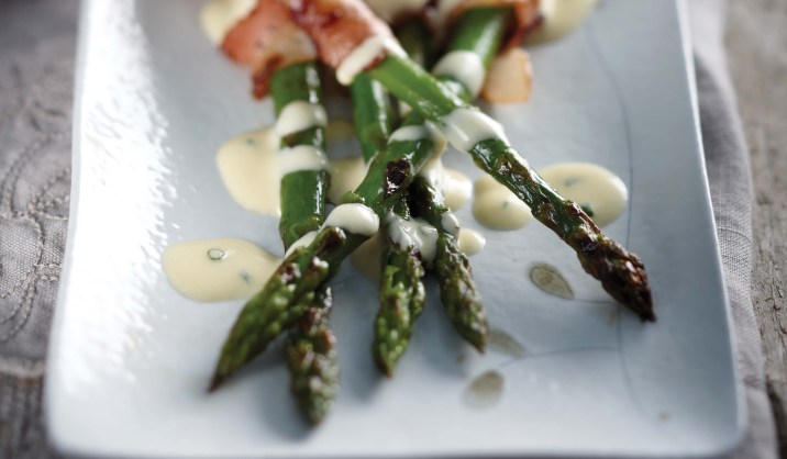 Griddled asparagus with lemon butter sauce