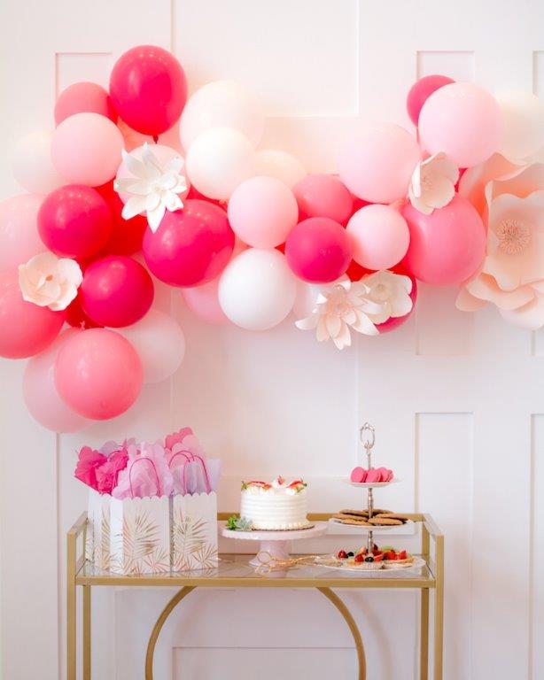 While your chosen theme will influence your choice of décor, there are a few basics worth keeping in mind. For example, flower arrangements can easily be tailored to suit your theme by colour or design. Party staples can also work really well when used correctly, including balloons and paper décor like paper balls, lanterns or fluffy pom poms. There’s no need to splurge when a few perfectly placed pieces can give the biggest impact, like a solo feature wall or simple tablescape comprised of a centrepiece and pretty cutlery, crockery and glassware.
