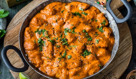- Served topped with sour cream, diced tomatoes, spring onions and cheddar cheese
