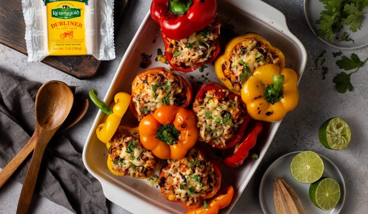 - In a small saucepan melt 6 tablespoons Kerrygold Pure Irish Butter; pour into a 13 x 9-inch baking dish, tipping dish to coat bottom with butter.