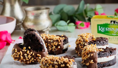 1. Preheat the oven to 180°C top/bottom heat. Line a 24cm springform pan with baking paper and grease it.2. Put the butter in a small saucepan and melt. Allow it to cool slightly. Put the flour in a bowl with the sugar, baking powder, baking soda and cocoa powder and a pinch of salt and mix.