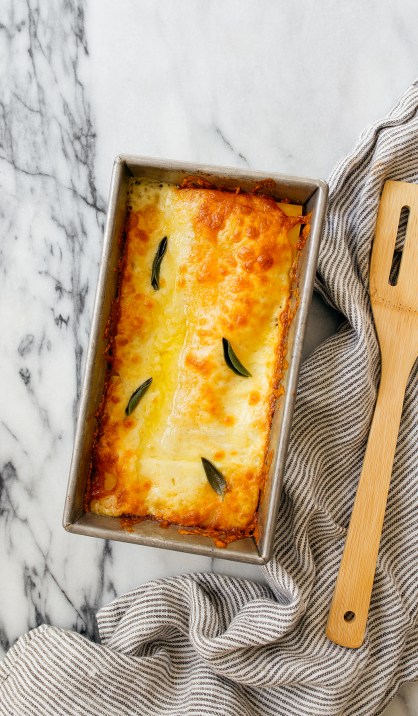 5. Tightly roll up the dough from the long side. Now use a bread knife to cut off pieces about 5cm wide and place them, cut side down, in a 28cm diameter springform pan lined with baking paper. Leave enough space between each roll as they will rise when they bake.