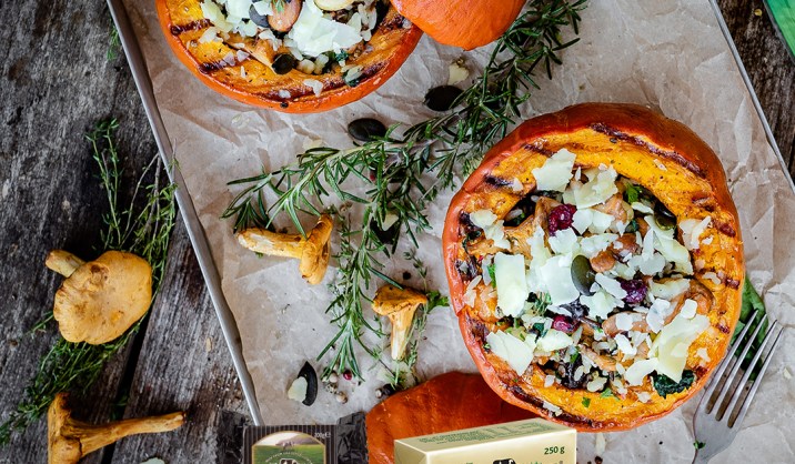 - Melt the butter in a small pan and use to brush all over the mushrooms, except the gills, as the filling will cover that. Arrange the mushrooms on a non-stick baking sheet, top-side down and fill the centres with spoonfuls of the garlic cream and cheese mixture. Bake for 15-20 minutes until the mushrooms are cooked through and the topping is golden brown.