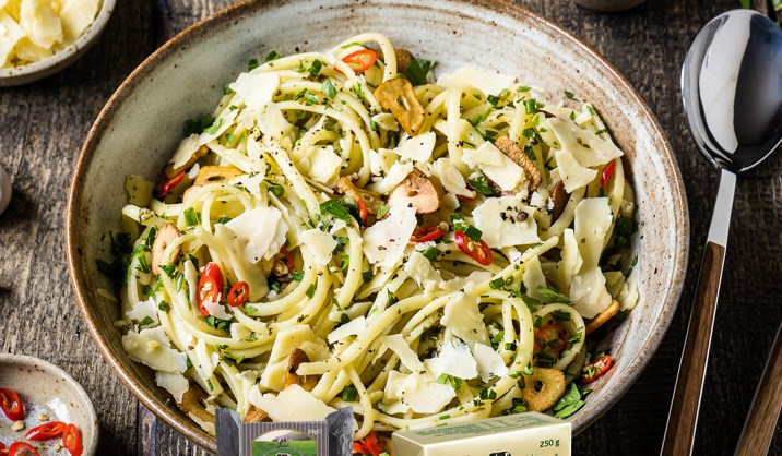 7. Place some more rocket on the bottom half followed by the patty and the cheese. Add a dash of pesto to the cheese and then the walnuts to taste. Place the lid on the burger and serve.